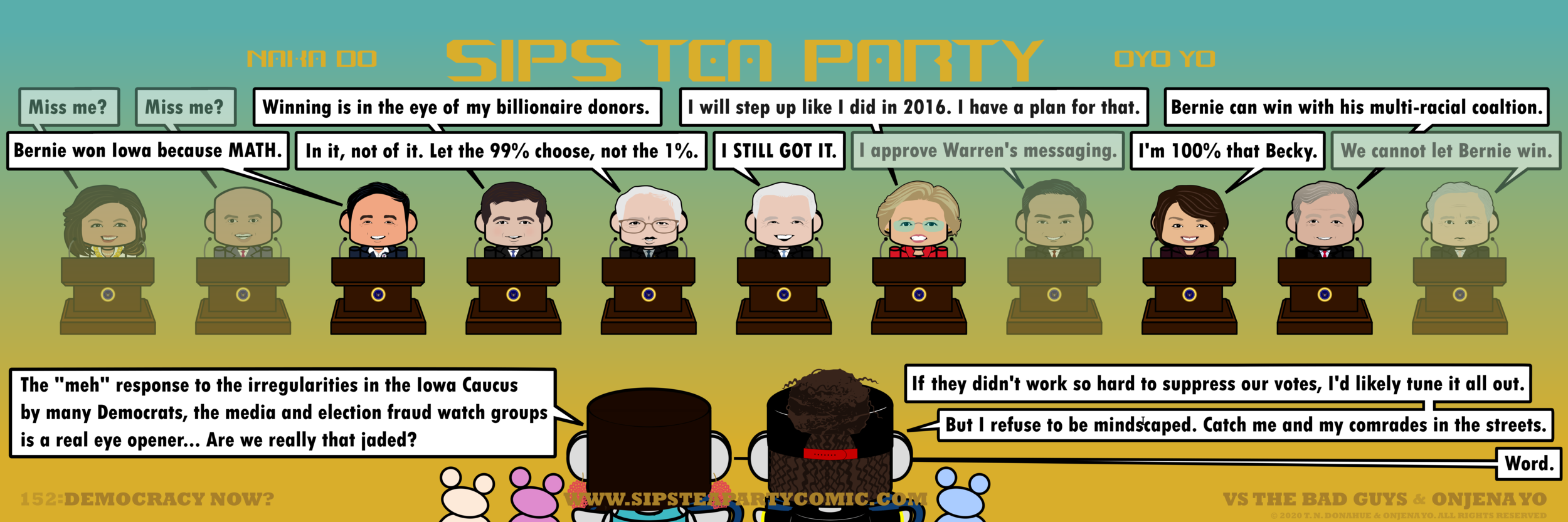 Sips Tea Party: 152: DEMOCRACY NOW? Feb 10 Written By Vs the Bad Guys & Onjena Yo Vs the Bad Guys & Onjena Yo